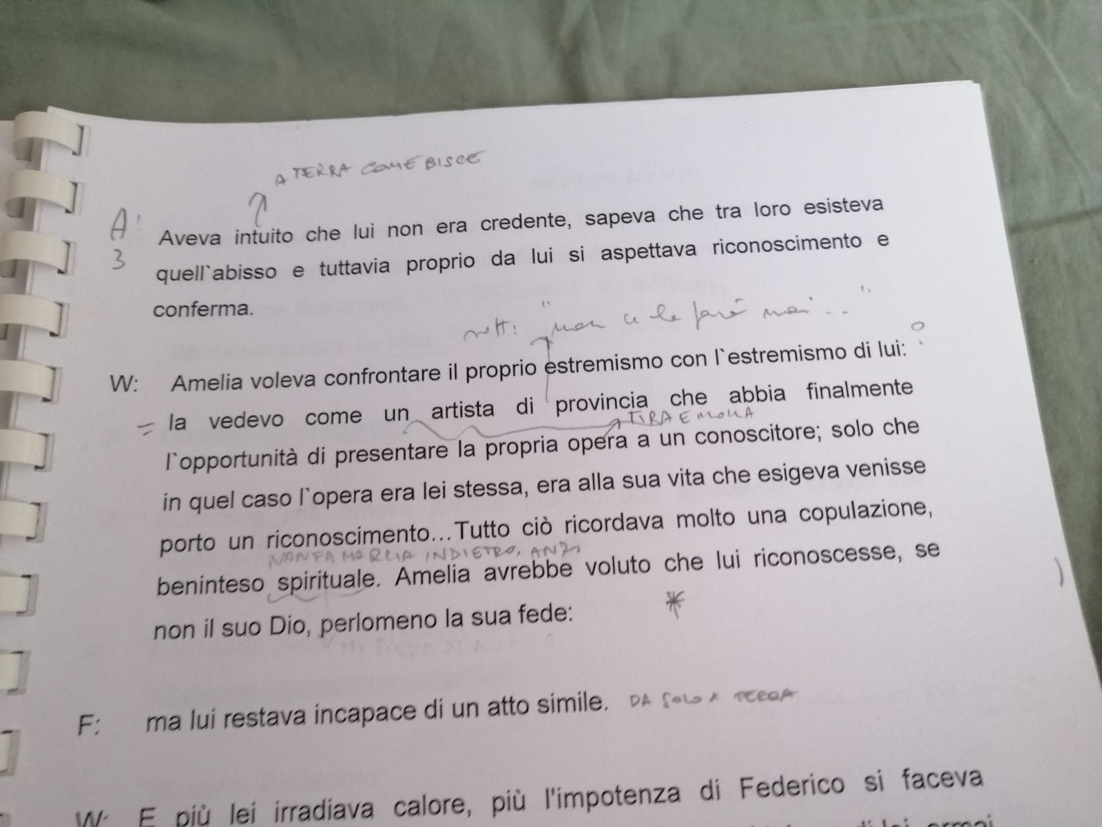 Pagina del copione Pornografia con gli appunti di Valentina Picello
