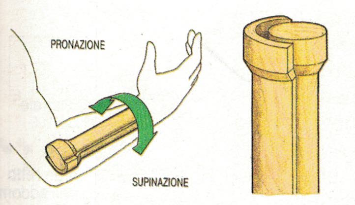 Articolazione trocoide. Le superfici dell’articolazione sono come un cilindro convesso che scorre su una superficie concava (come in questo caso nell’articolazione del radio-ulna).