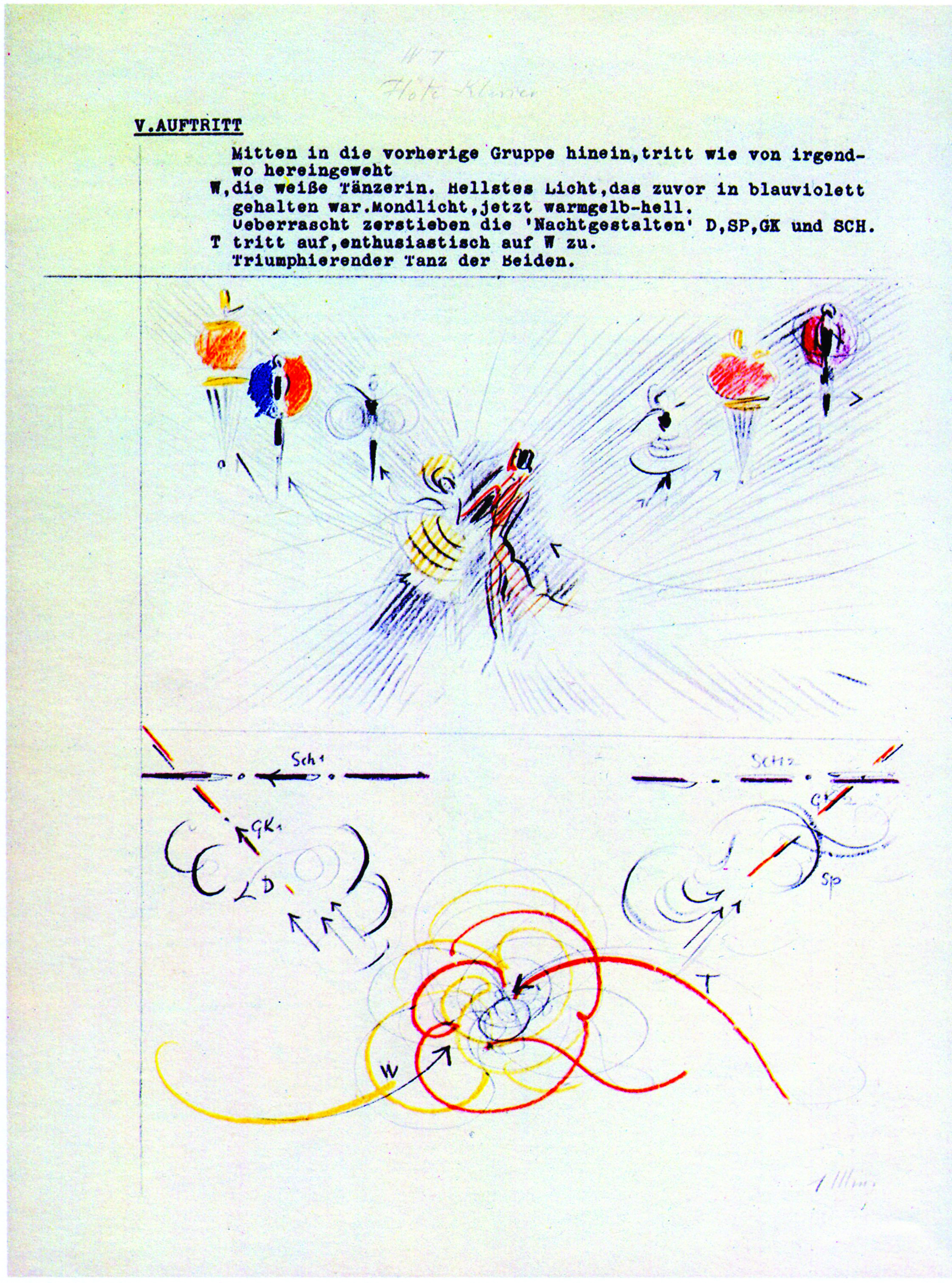 Balletto triadico. Versione per il varietà, 1936 Fogli 1-6. Matita e matita colorata. Proprietà Teatro Oskar Schlemmer (Collezione UJS) [Cat. N. 94 a-b-c-d-e-f-g]