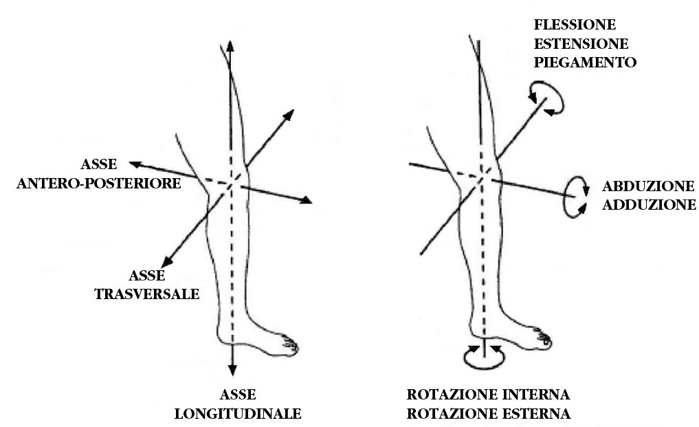 Illustrazione degli assi mediani articolari del ginocchio. Immagine elaborata da Demy Giustarini a partire da La mobilità del corpo umano, ASPHI e Politecnico di Torino, A.A. 2011-2012, p. 56.