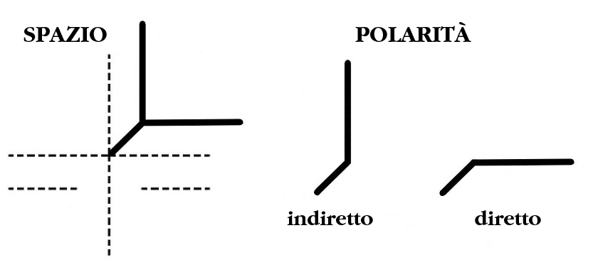 Simboli della Kinetographie per rappresentare graficamente lo spazio e le sue polarità a partire dall’Effort graph (si veda la Fig. 15). Immagini elaborate da Demy Giustarini.