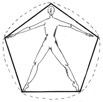 Le zone di movimento delle parti periferiche del corpo individuate da Laban per mezzo della figura geometrica del pentagono visualizzato in relazione alla cinesfera.