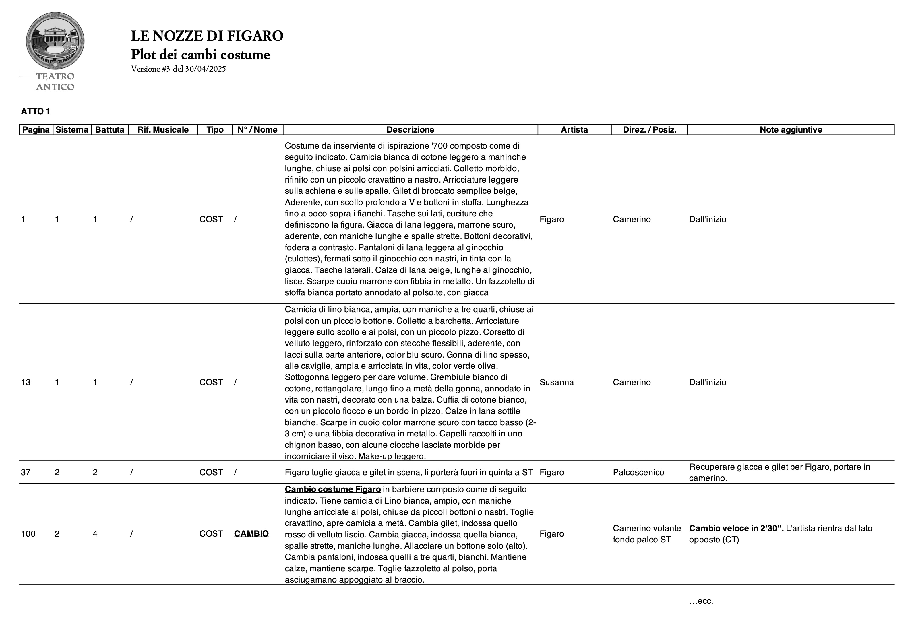 > Esempio di plot dei cambi costume