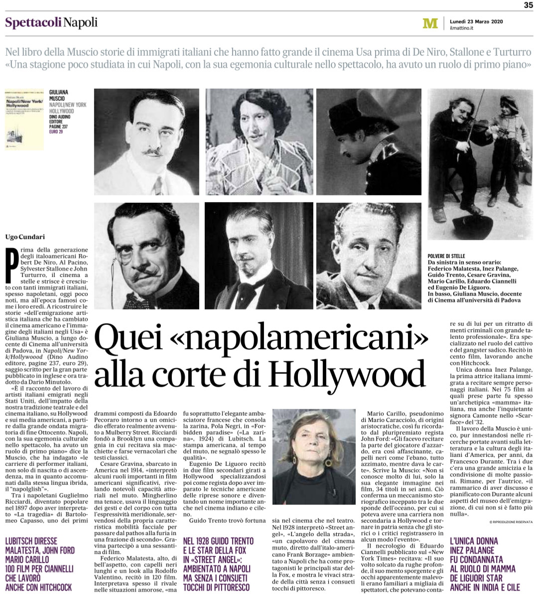 Napoli/New York/Hollywood è un’appassionata ricerca sull’impatto esercitato da attori, musicisti e registi italiani emigrati negli Stati Uniti sulla storia del cinema hollywoodiano e sui media americani tra il 1895 e il presente. Il lavoro culturale di generazioni di attori (e musicisti) provenienti dall’Italia ha infatti contribuito non solo al cinema d’Oltreoceano, ma anche alla costruzione dell’immagine degli italiani e dell’italianità presso il pubblico americano.