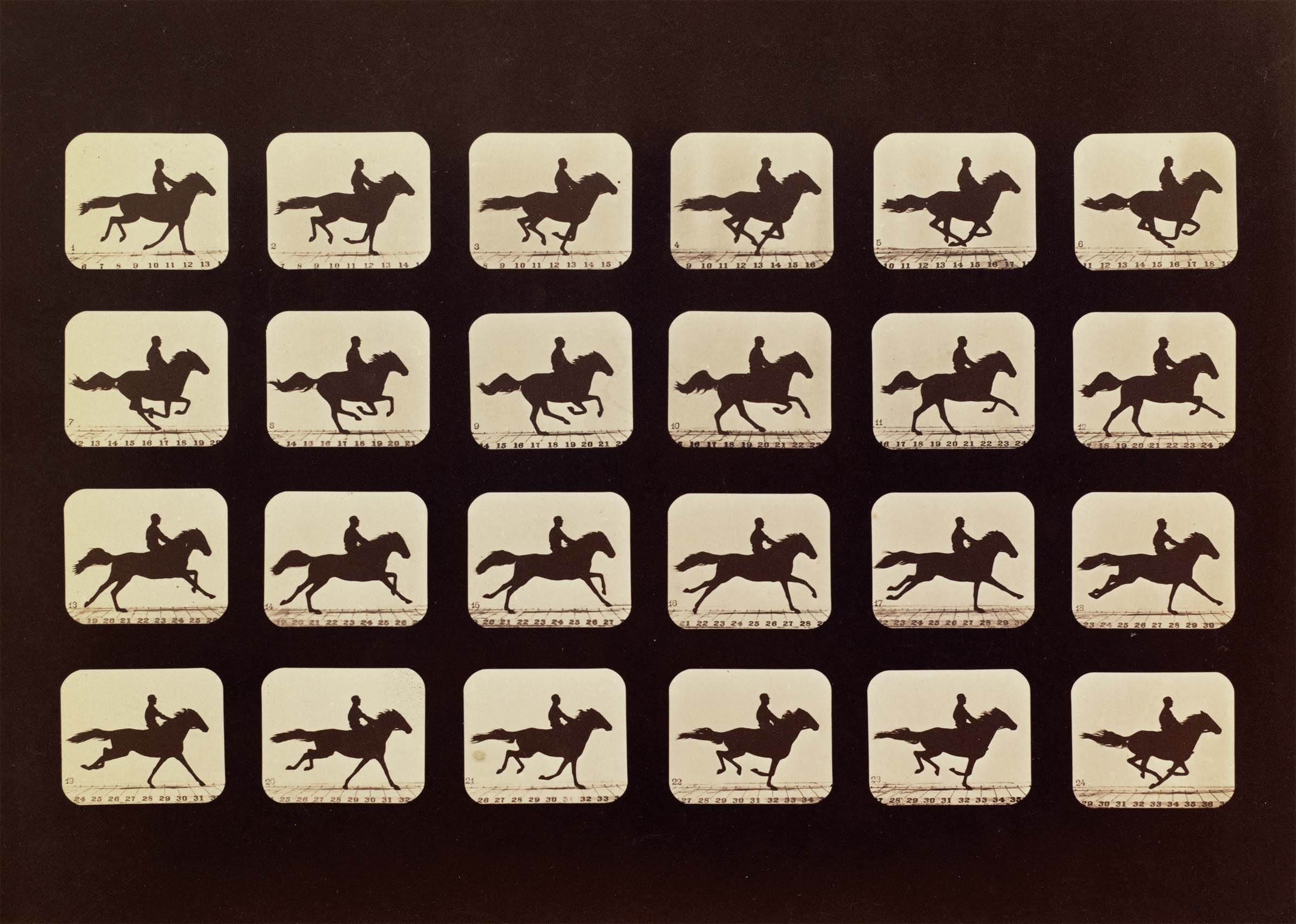 E. Muybridge, "Cavallo al trotto e fantino", da "The Human Figure in Motion", 1887