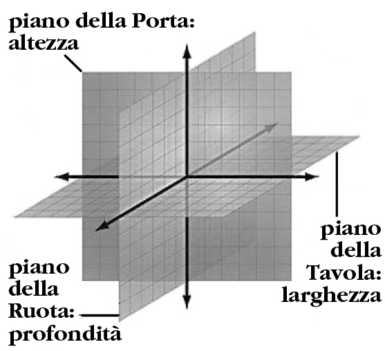 I tre piani dimensionali formati dall’estensione delle dimensioni della croce.